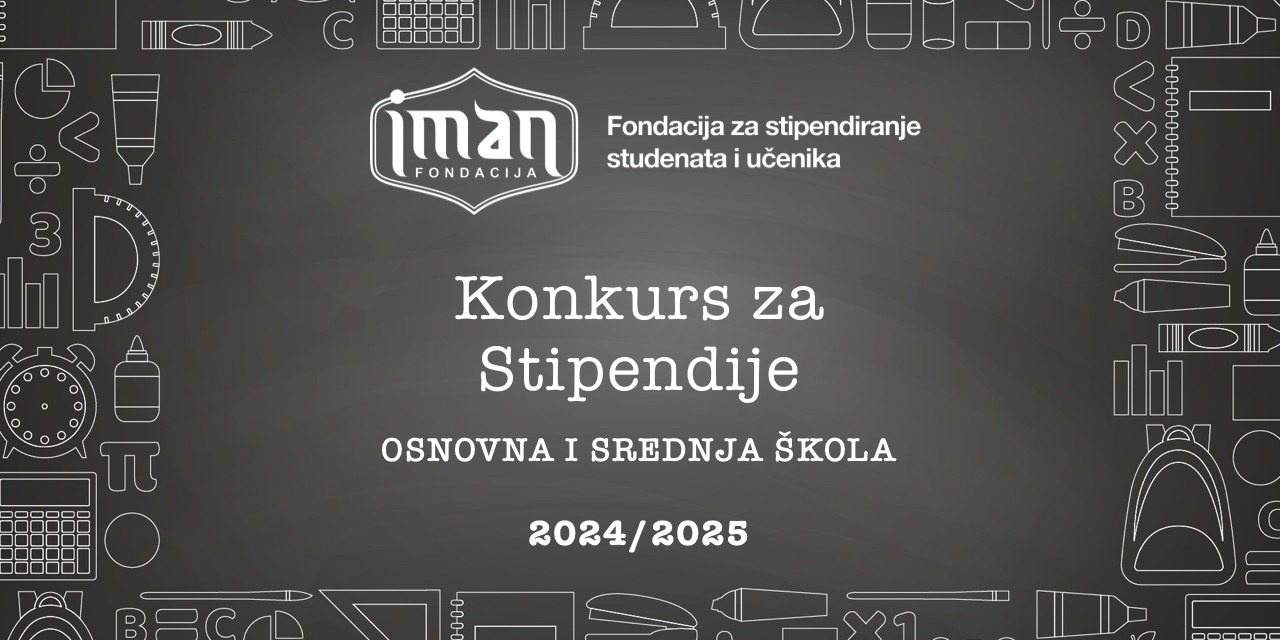 za dodjelu stipendija učenicima osnovnih i srednjih škola u Bosni i Hercegovini (sa područja općine Velika Kladuša 80% ukupnog iznosa stipendija), te sa područja BIH (20% ukupnog iznosa stipendija) za školsku 2024./2025. godinu za koje finansijska sredstva osigurava Fondacija “IMAN” V. Kladuša