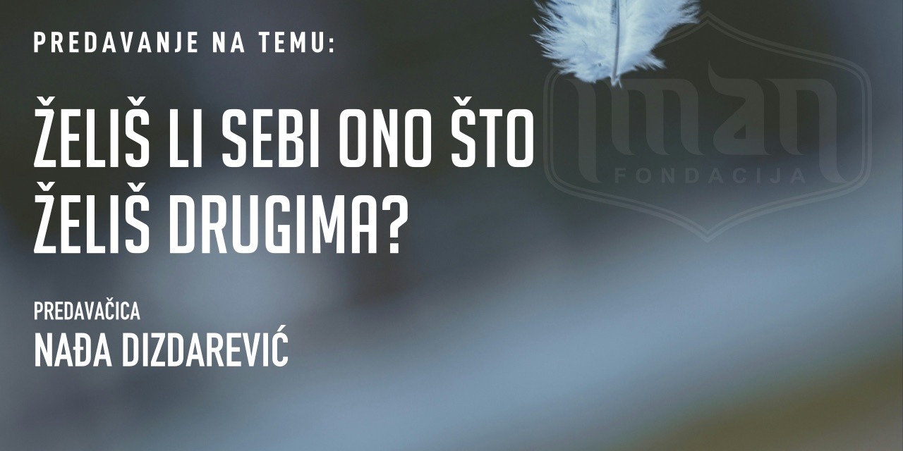 Fondacija IMAN organizuje predavanje na temu „ŽELIŠ LI SEBI ONO ŠTO ŽELIŠ DRUGIMA“ sa Nađom Dizdarević.