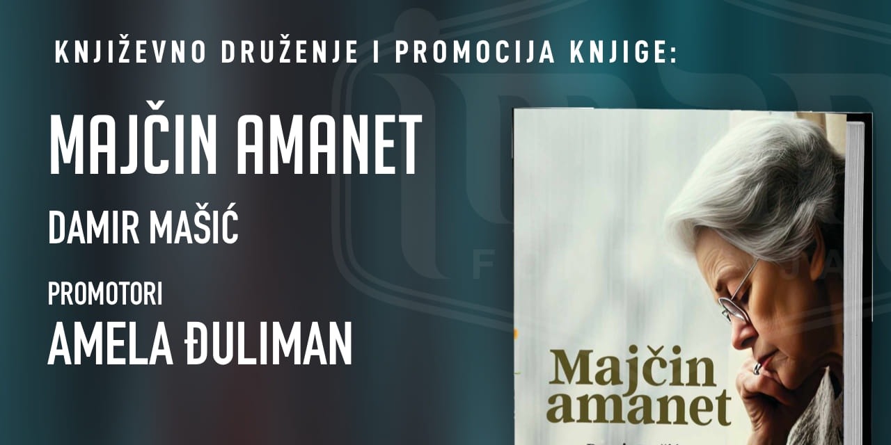 Fondacija IMAN organizuje književno druženje i promociju knjige „MAJČIN AMANET“ autora Damira Mašića.
