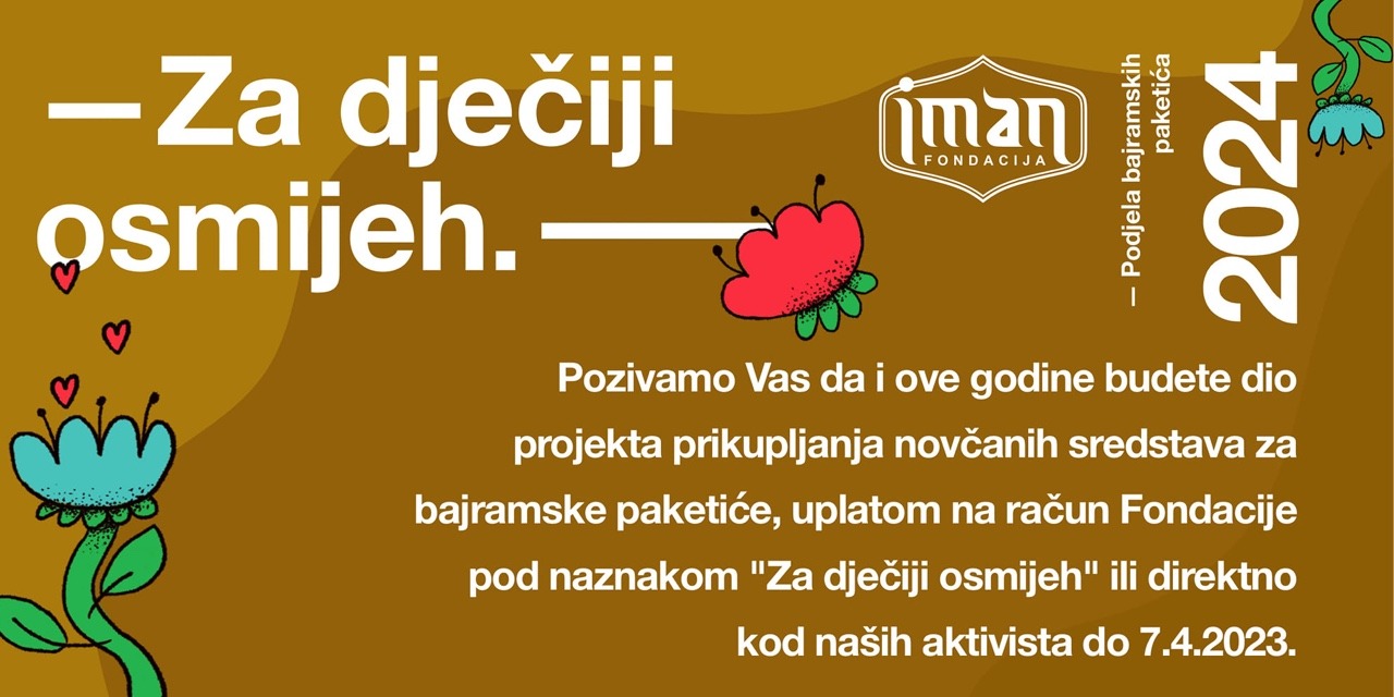 🎁 Dragi prijatelji Fondacije IMAN i ove godine po 8️⃣ put krećemo u realizaciju projekta bajramskih paketića pod nazivom “Za dječiji osmijeh”.